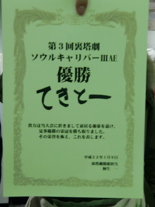 遅ればせながら先日行われました裏塔劇の各タイトル覇者、及び入賞者を発表いたします。