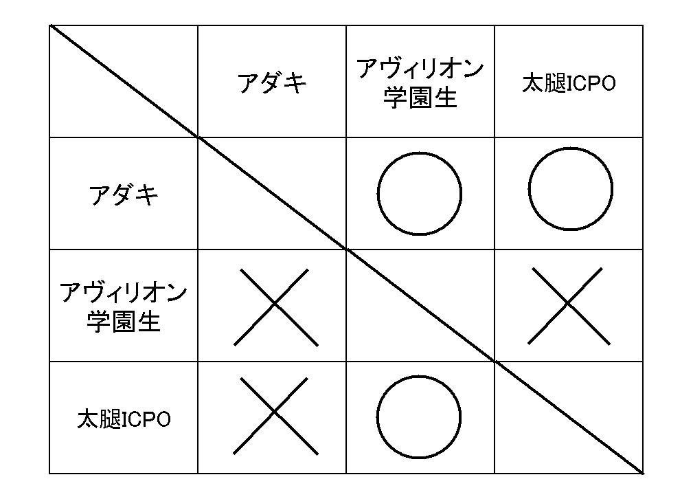 今回は参加者数12名で、3人総当り×4+決勝トーナメントを行う形でやらせて頂きました。