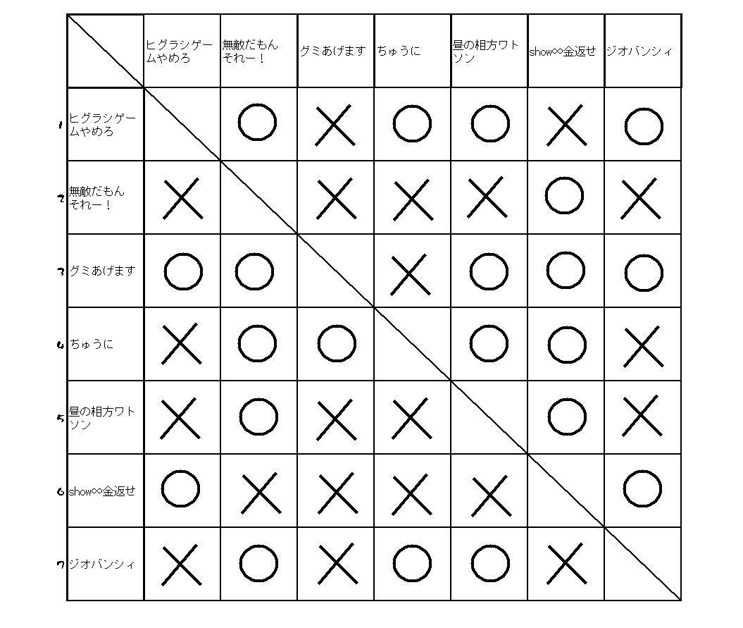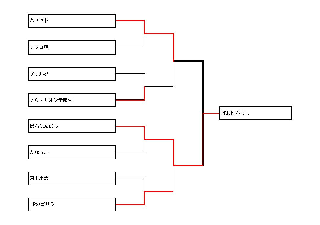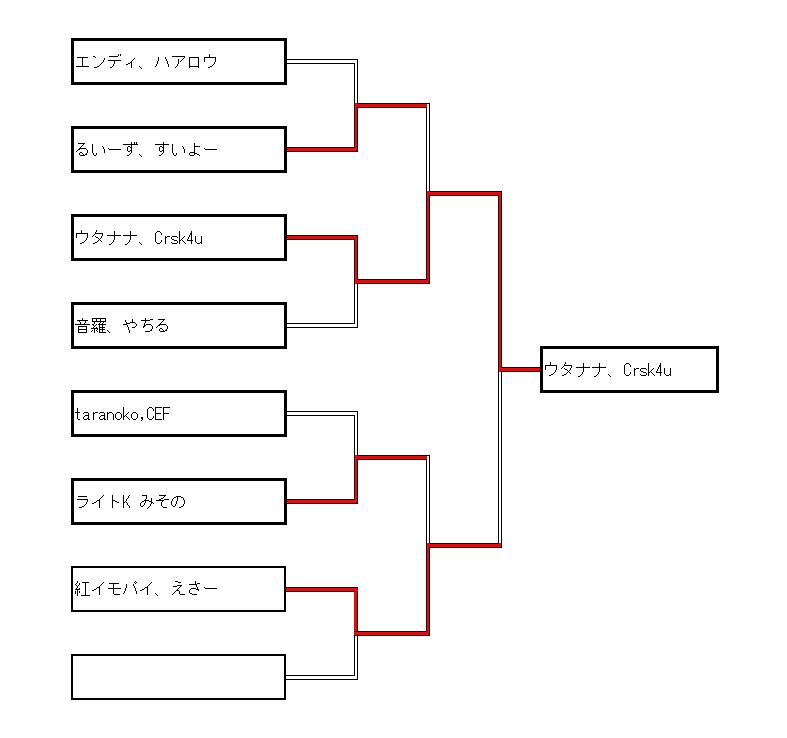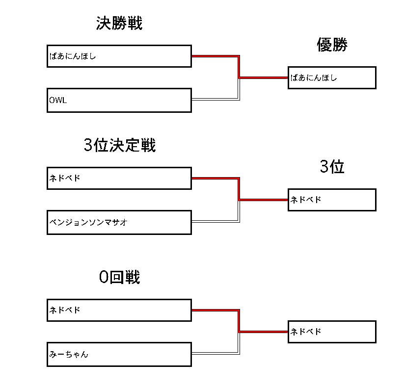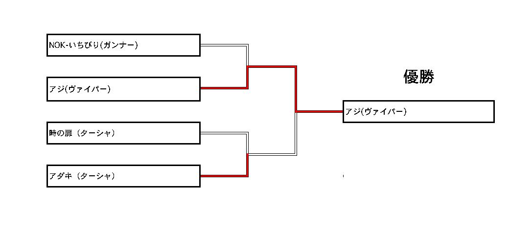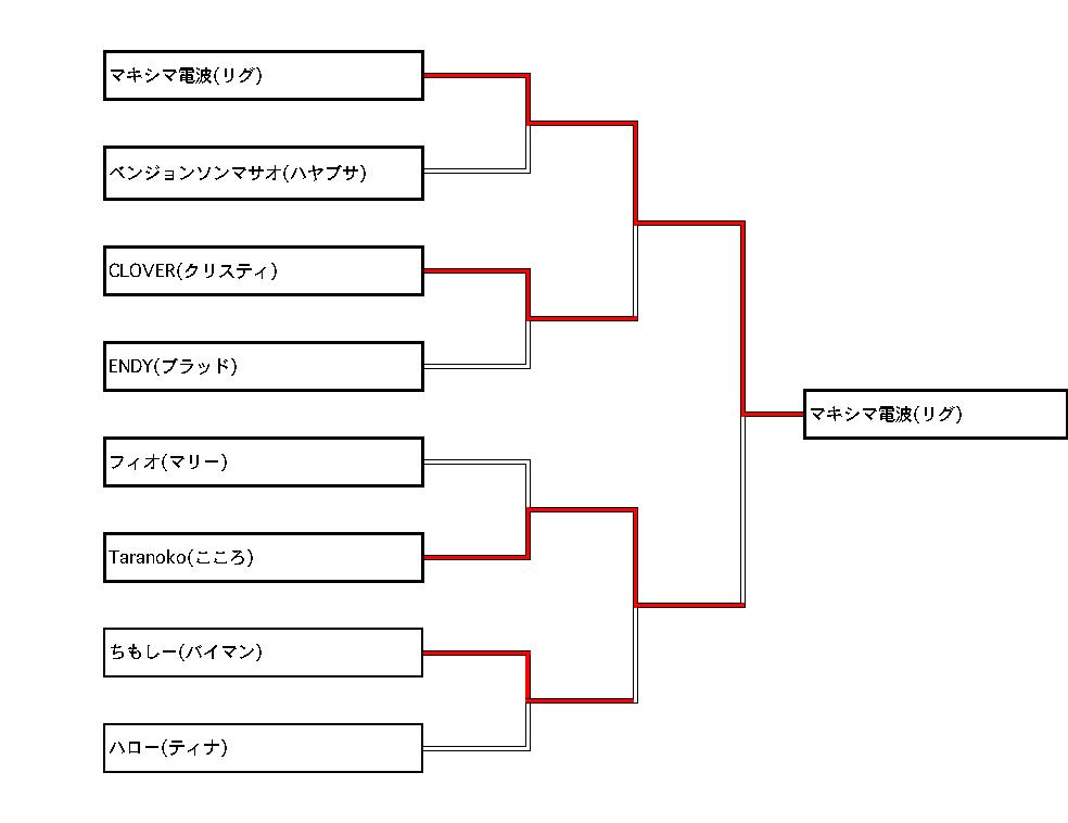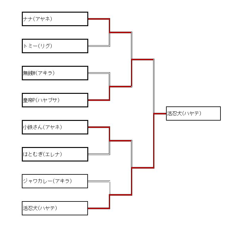 今回は参加者数17人で、8人トーナメント+0回戦×1+決勝戦の形式でやらせて頂きました。