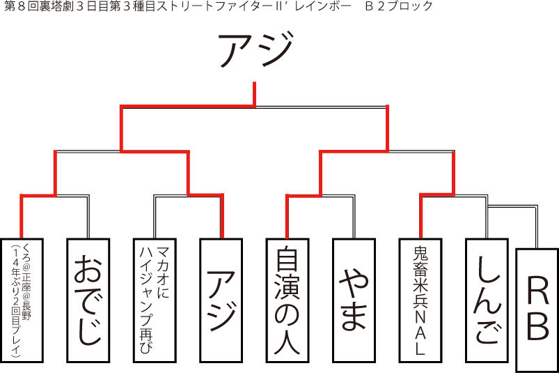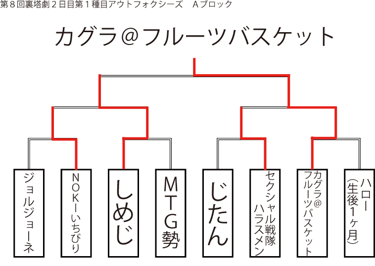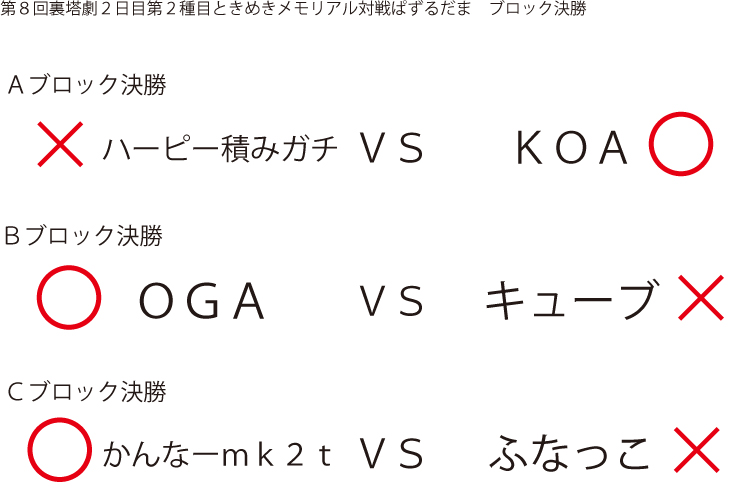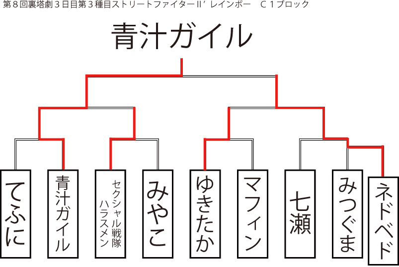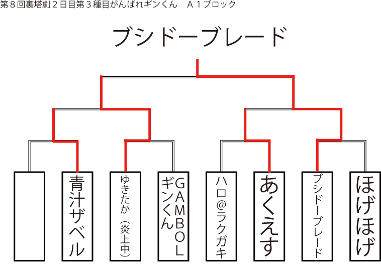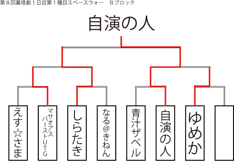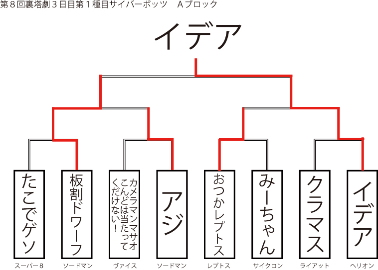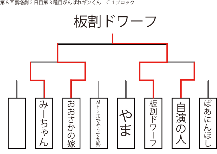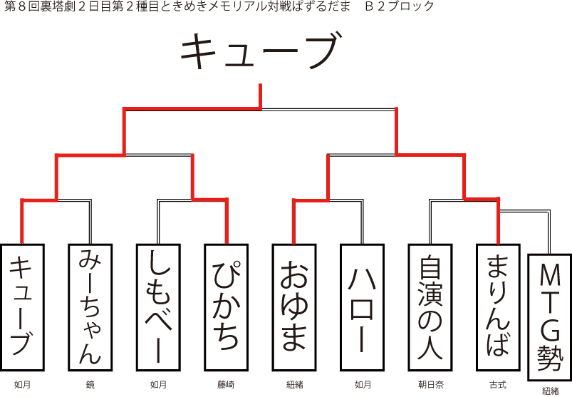遅ればせながら先日当店にて行われました「第8回裏塔劇」の各種目上位入賞者及びトーナメントを発表いたします!!