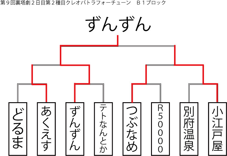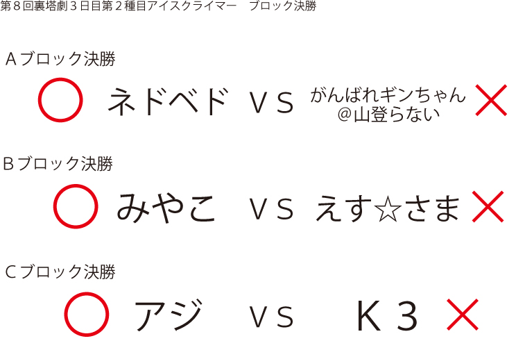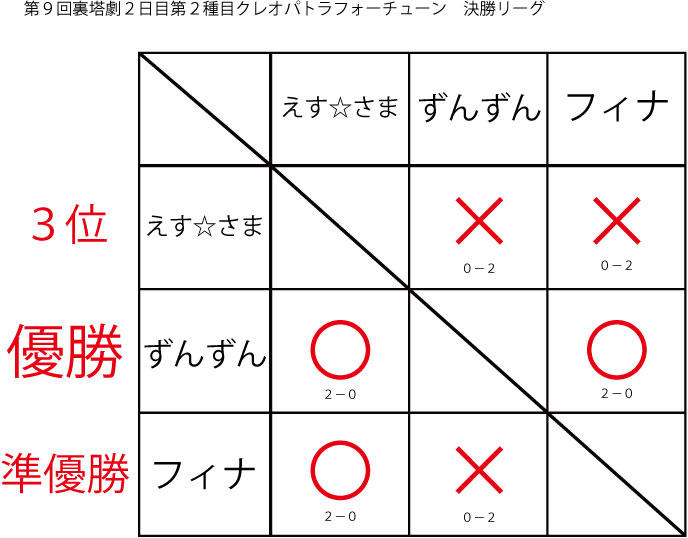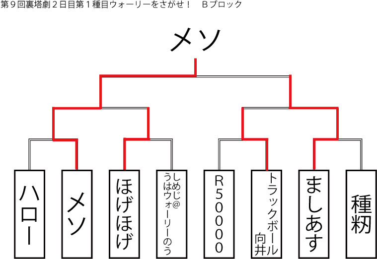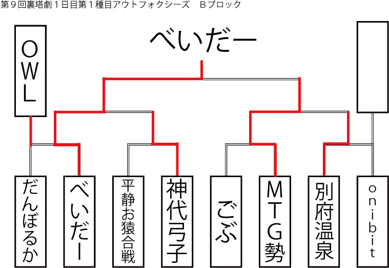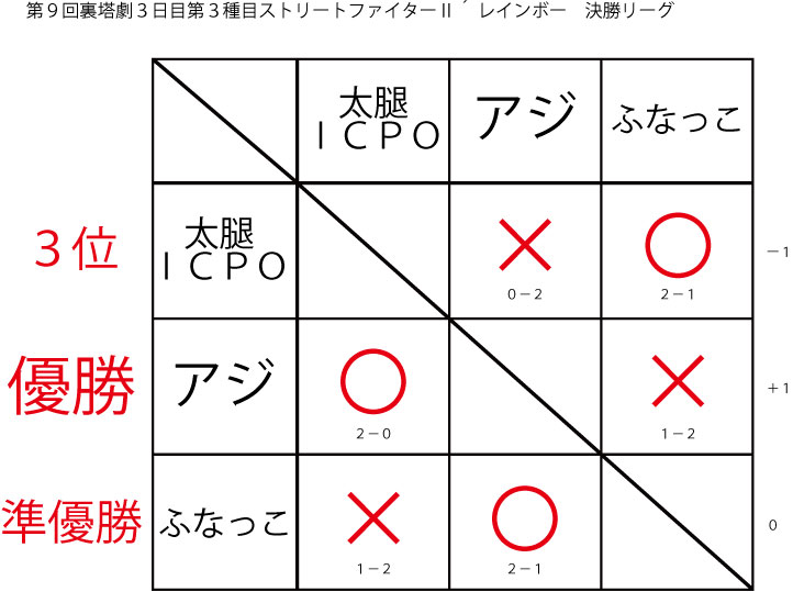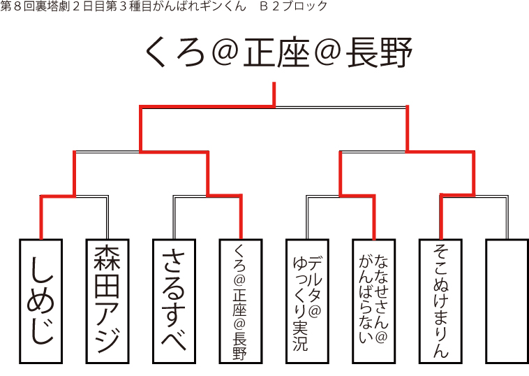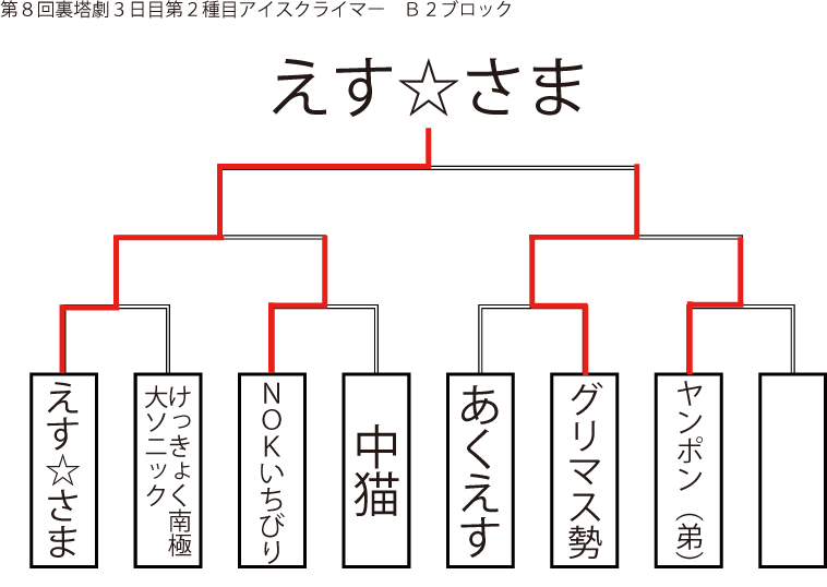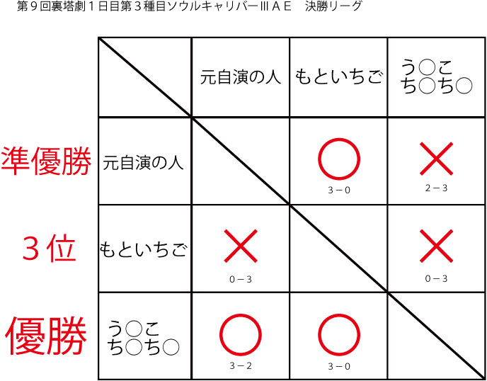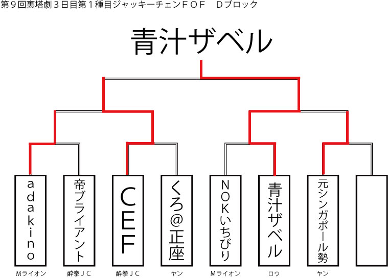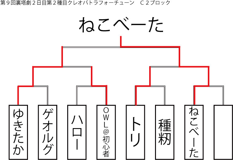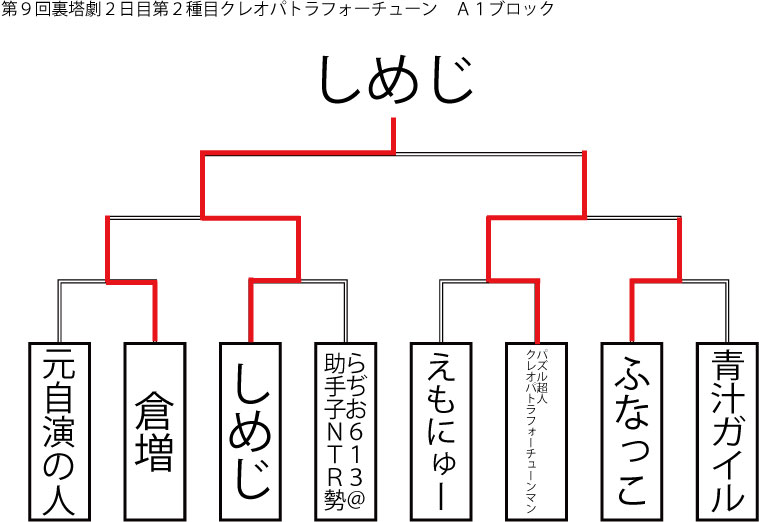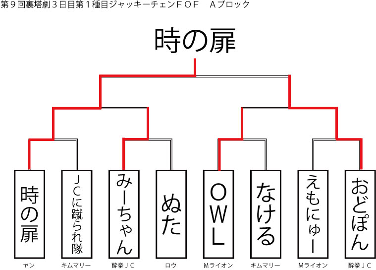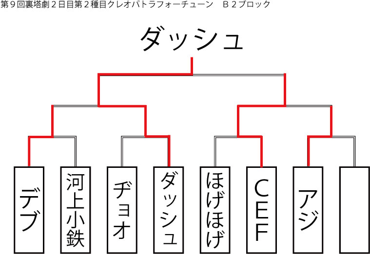 今大会も新種目は元より、常連種目に関してもマンネリを感じさせない試合の連続で新鮮味溢れる大会内容でした。個人的にはマリオブラザーズの無限1UPの原型としてあまりにも有名な(?)とある新即死ムーブを目の当たりに出来たのがかなり・・・。果たしてその内容は如何なる物か?それは動画で確認しましょう!(例の如くニコニコ動画にて今大会の動画をアップ中、キーワード「第9回裏塔劇」で検索して下さい。)