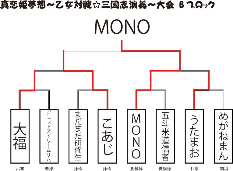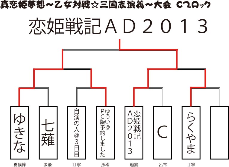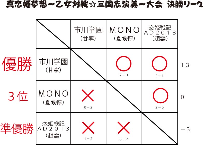 3月30日に当店にて行われました「真恋姫夢想~乙女対戦★三国志演義~」大会の結果発表をいたします。